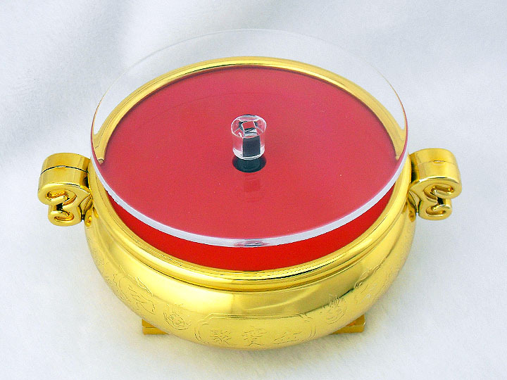 产品外表镀金,显得富贵奢华,两块伸展开的太阳能板,像是一双手,接纳这八方财源,红色的底盘,喜气温馨,象征着 和气生财,汇聚八方财源。