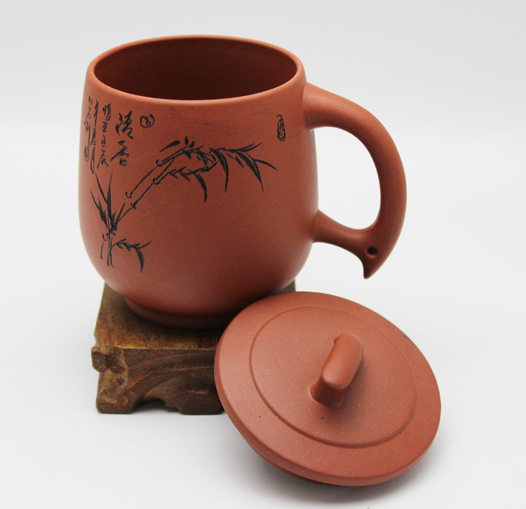 紫砂盖杯属于全手工产品,每个紫砂盖杯表面的字画是由工艺师单独随手手工刻画,照片上的字画和发货时的字画不一定会完全一样,请于理解。
