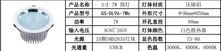LED灯 7W筒灯 3寸压铸铝外壳 晶元 普瑞芯片 品质保证