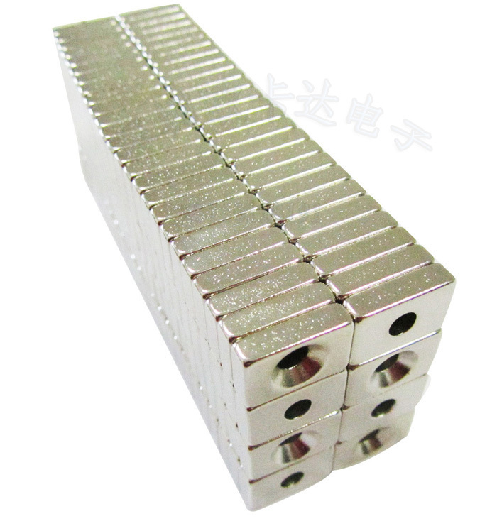 第三代稀土永磁钕铁硼是当代磁铁中性能最强的永磁铁。其潜在的磁性能极高,能吸起相当于自身重量千倍的重物。钕铁硼磁铁的机械性能较其它磁铁要好,更易于切割和钻孔及复杂形状加工。其不足之处是温度性能不佳,在高温下使用磁损失较大,最高工作温度较低。一般为80摄氏度左右,在经过特殊处理后,其最高工作温度可达200摄氏度。由于材料中含有大量的钕和铁,故容易锈蚀也是它的一大弱点。所以钕铁硼磁铁必须进行表面涂层处理。可电镀镍(Ni), 锌(Zn), 金(Au), 铬(Cr), 环氧树脂(Epoxy)等。