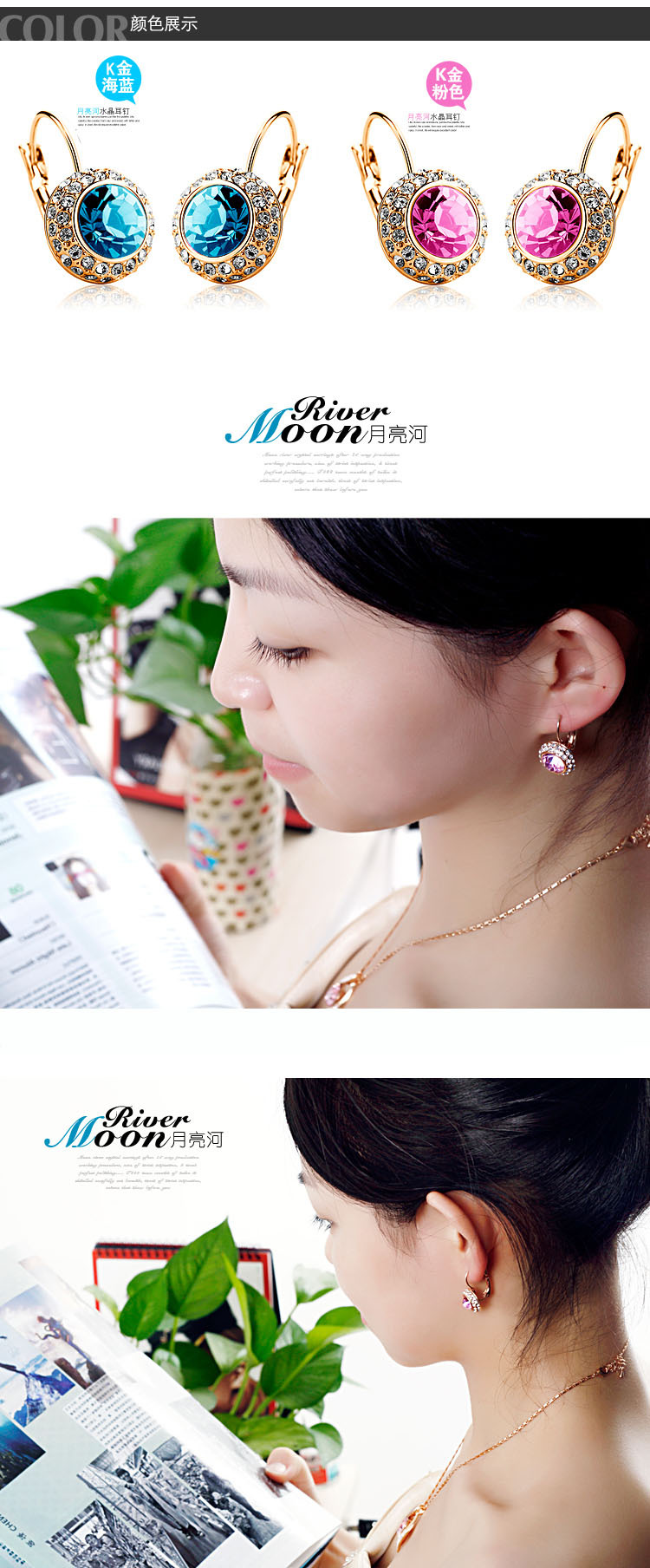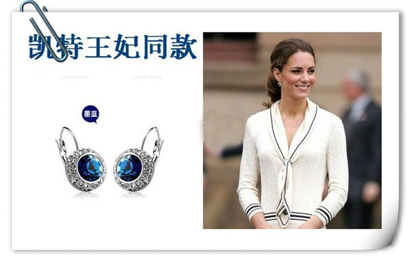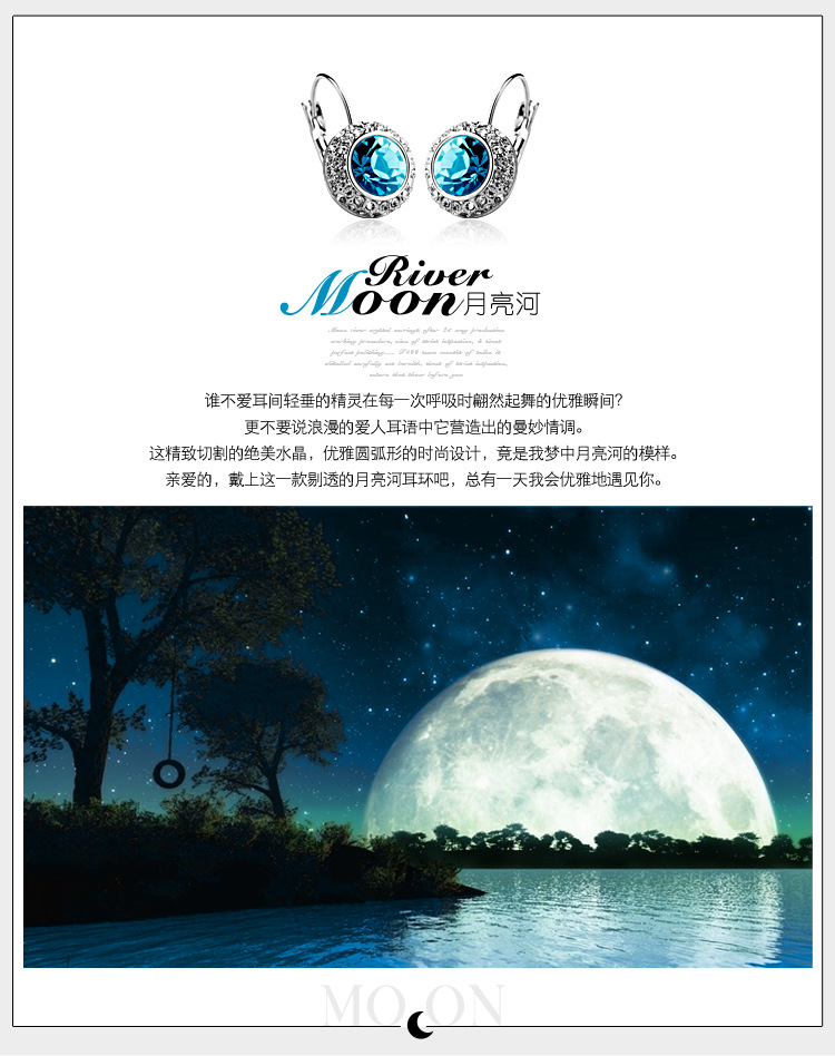 伊泰莲娜专柜正品饰品奥地利水晶耳扣凯特王妃同款女月亮河耳环