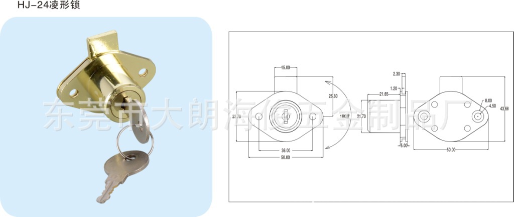我公司供应最便宜的家具锁,此家具锁外观美丽,质量可靠,售后服务我们注重承诺,详细规格如下: 1.配两把钥匙。可以做通开和不通开,通开,锁和锁之间可以互相打开,不通开,锁的锁之间不可以打开。 2.钥匙类型:A胶头B胶头折叠C全锌合金D全铁E全铜。 3.产品已通过SGS国际环保认证。 4.售后服务:我公司注重承诺。诚信是本。 海俊五金制品厂主要设计和生产锌合金家具五金配件产品,严格按照ISO9002质量标准体系进行科学化,系统化管理。品种包括家具锁、把手、锁体、锁芯、玻璃锁、锌合金产品以及其它小五金产品。所有产品的材质是高品质的A#材料锌合金,表面处理美观,经久耐用。同时OEM/ODM产品出口到欧洲,东南亚,日本等国家和地区. 表面处理: 我们的标准:锌合金拉丝/抛光, 舌片可定做. 构成: 舌片 锁芯 外壳 两对钥匙 单位:把 包装尺寸:38*33*32 包装种类:白盒/mrlock彩盒/定做 毛重: 每箱数量:20pcs 每集装箱数量:12600 pcs | |||||||||