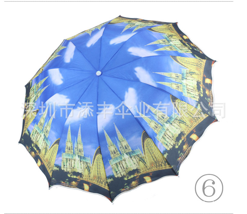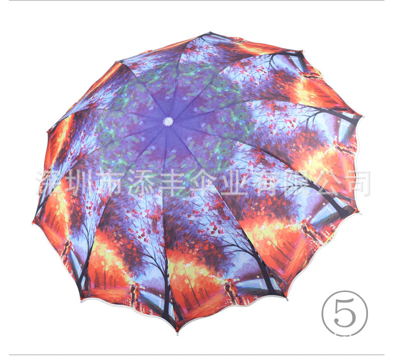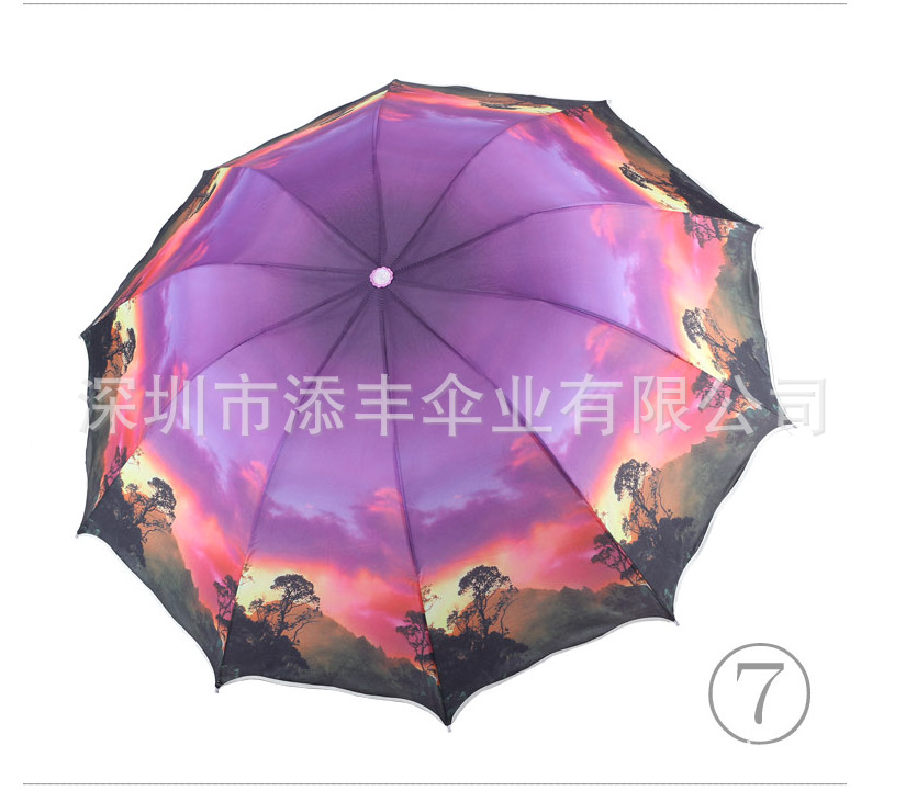 炫丽灿烂的印花图案,韩版创意遮阳伞,采用10根全钢骨特牢固,2013年最新款风景伞,让您尽显热情奔放!