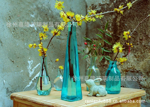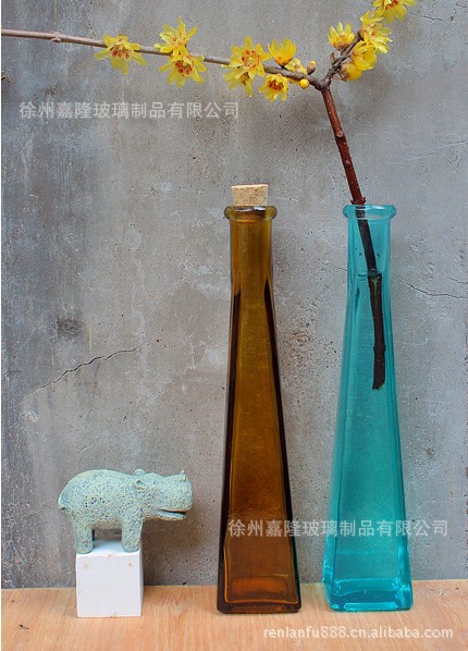 彩色透明玻璃木塞花瓶 长形插花花盆 水培容器 zakka 家居装饰