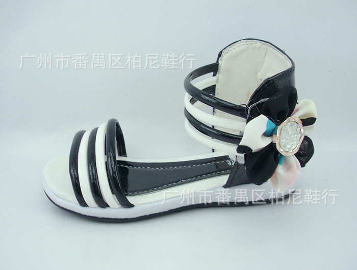 新款女童凉鞋批发 中大童凉鞋 水钻花朵韩版公主鞋 漆皮儿童凉鞋