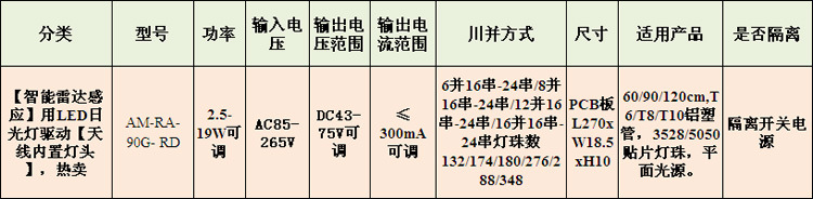 AM-RA-90G-RD雷达感应LED低压恒流驱动电源是专为地下停车场、楼梯过道等长时间照明场所设。计的智能型雷达感应控制单路输出的经典隔离恒流开关电源。