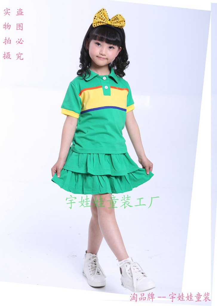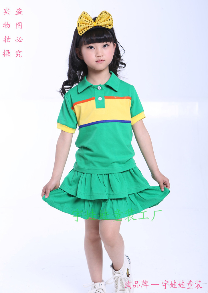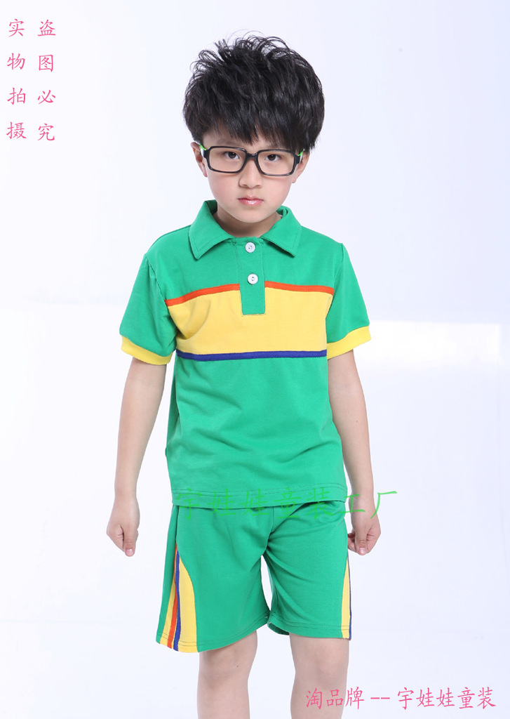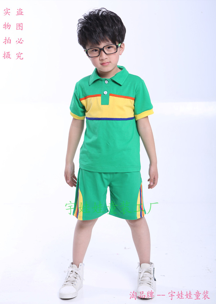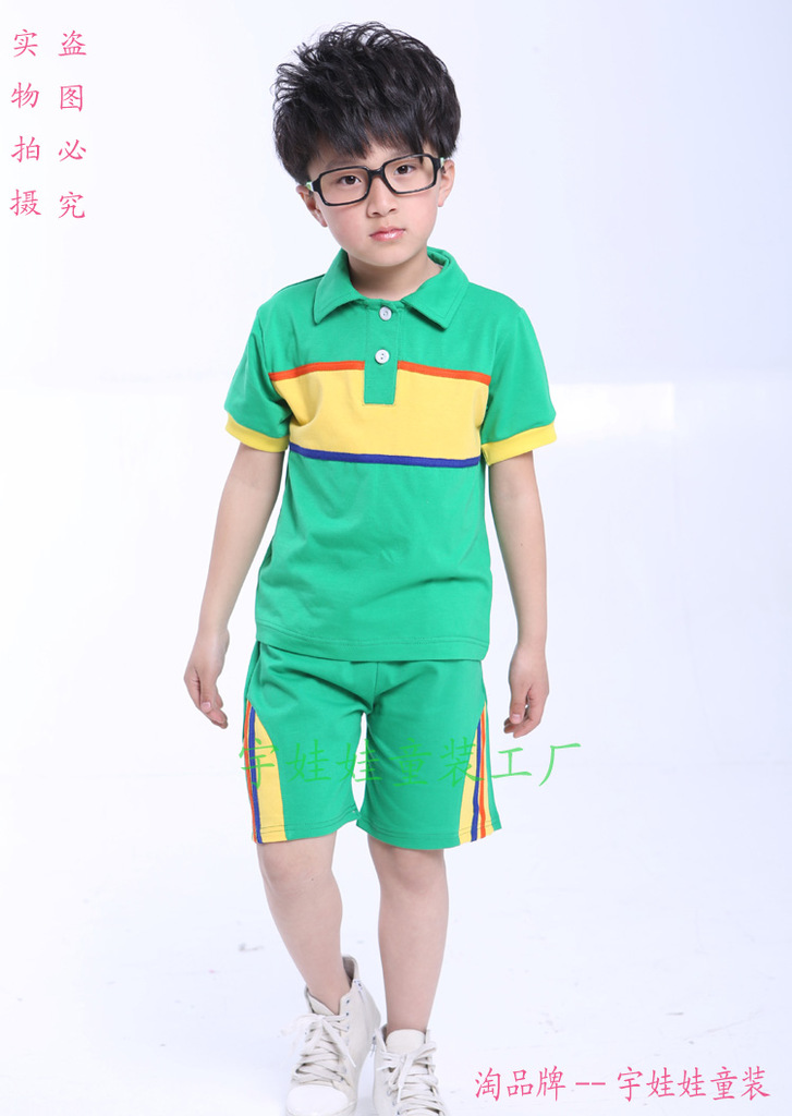 2013夏季校服新品纯棉套装绿色男生女生幼儿园服中小学生校服