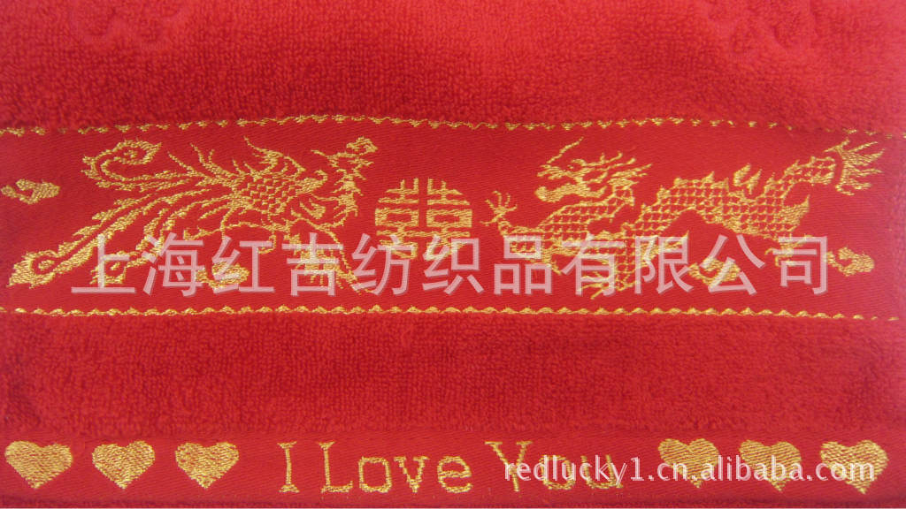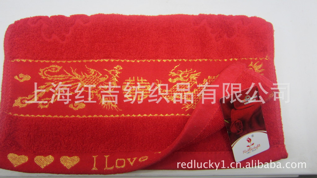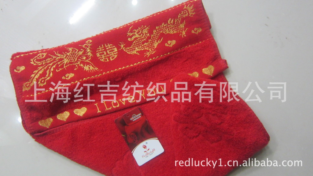 高阳厂家直销红吉婚庆大红经典龙凤呈祥无捻纯棉6303毛巾300条起