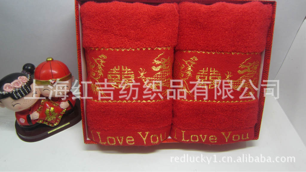 高阳厂家直销红吉婚庆大红32股提老公老婆6058毛巾300条起批