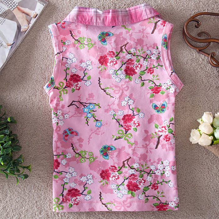 NOVA/小新星童装外贸无袖T恤女童无袖T恤大花纯棉衬衣领T恤N2693