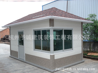 岗亭配有开关、日光灯、电源、电源插座,桌面、电话插座、空调插座、配电相漏电单片,技防线方便使用;门窗可选:铝合金门窗、塑钢门窗、不锈钢门窗 款式、尺寸多样