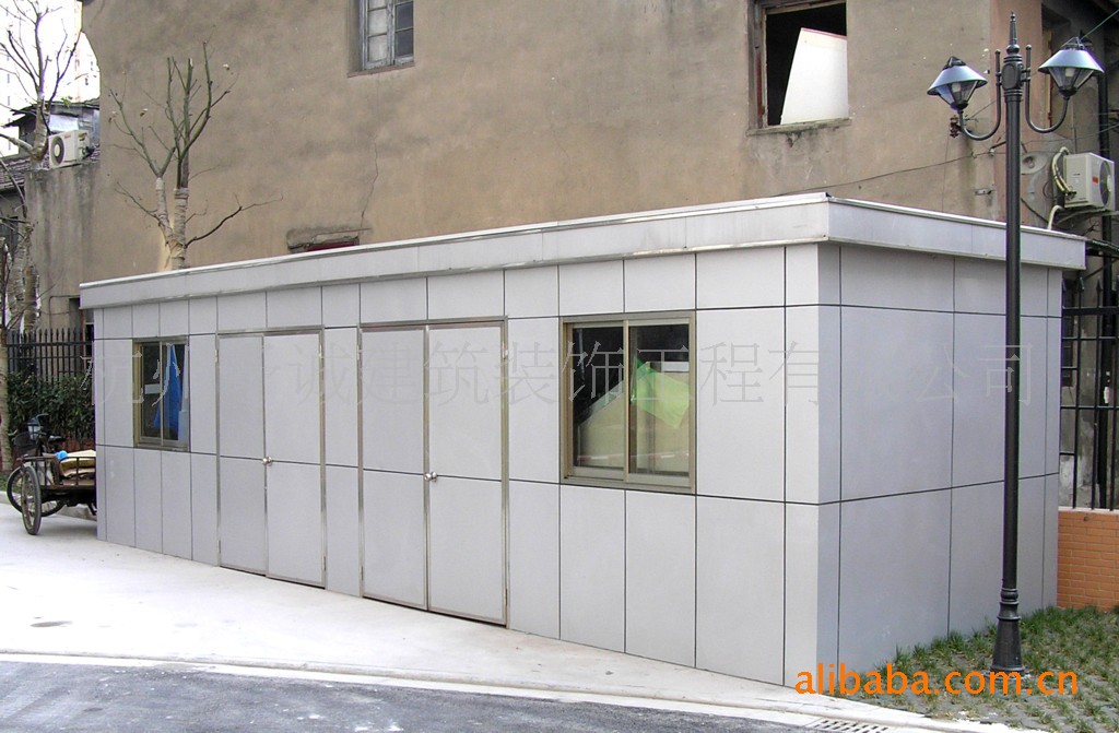 岗亭内墙板为铝塑板,外墙板为外墙板为1.2mmSUS304不锈钢板,表面可做氟碳处理,颜色可自由选择;