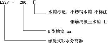 螺旋式砂水分离器由无轴螺旋、衬条、U 型槽、水箱、导流板、出水堰和驱动装置组成。砂水混合物从分离器一端顶部输入水箱,混合液中重度较大的,如砂粒等将沉积于槽型底部,在螺旋的推动下,砂粒沿斜置的槽底提出升,离开液面后继续推移一段距离,在砂粒充分脱水后经排砂口卸至盛砂桶,而与砂水分离后的水从溢流口排出并送往厂内进水池。