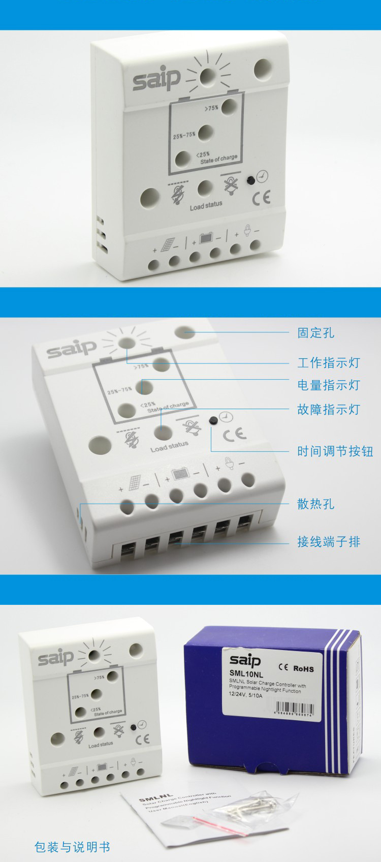 赛普厂家生产太阳能路灯控制器 12V/24V自动识动