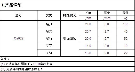 尊敬的新老客户,本厂专业生产:不锈钢餐具、西餐刀叉勺、西餐刀叉套装/优质的质量和最好的服务来回报所有的客户!谢谢!产品可加工定制新款式及形象LOGO。如有需要的客商请与本厂联系,本厂会以最低的价格!