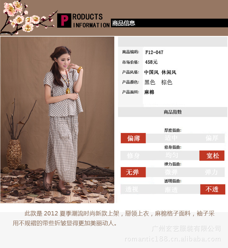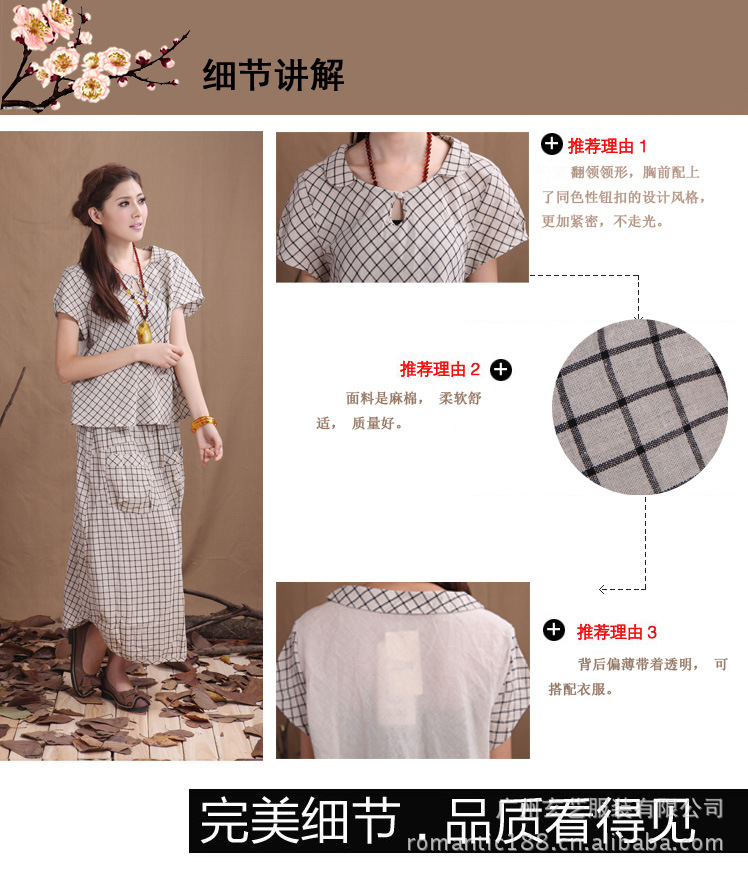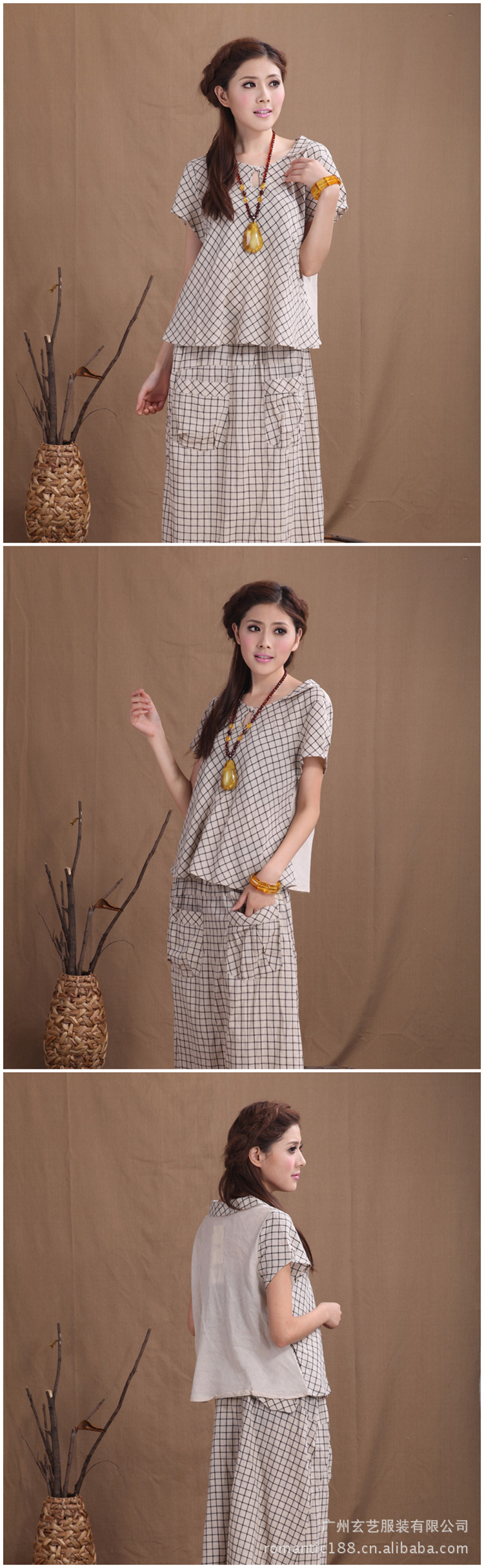 洼达蓝妮 2012 时尚女夏装 麻棉格子上衣 翻领 宽松T桖