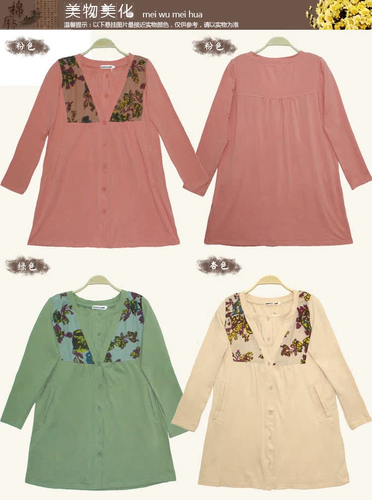 衣茗飘香 春款长袖上衣外套纯棉长款休闲大码连衣裙品牌外套318