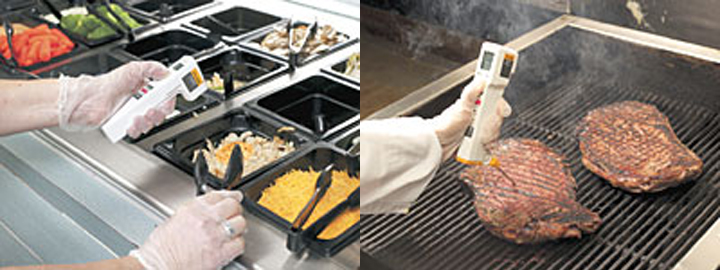 Fluke 将其测试和测量设备专业技术应用到食品行业,开发出接触式与非接触式温度测量解决方案。 新型 Fluke FoodPro 测温仪系列为食品专家提供了一整套温度测量和监控解决方案。 这套解决方案包括两个功能强大的温度检测工具,可帮助食品专家快速、准确地测量食品温度,并有助于检测出潜在的食品安全问题。 Fluke FoodPro 非接触式测温仪是防御不适当接收、存放温度的前线设备。 该款高精度 FoodPro 测温仪采用红外线测量技术,能够迅速读取表面温度,使工作人员能够快速、频繁地测量温度 – 其测量速度要快于接触式设备,并且无需担心交叉污染。 易于观察的照明灯可向您指示测量区域。 Fluke FoodPro Plus 兼有相同的红外线表面温度扫描器以及一个探针测温仪,它还集成了倒计时器,用于全面检验食品温度和监控烹制与冷却时间间隔。 FoodPro 系列测温仪可手洗并具有独特的 HACCP 检测光,它能够即刻以绿灯或红灯的形式指示安全或可能不安全的存放温度。 实际应用 接收:使用 FoodPro 系列测温仪迅速验证食品在交付时是否符合 HACCP 计划所建议的适当温度。 食品存放:方便地监控冷、热食品的存放情况。 HACCP 检测光有助于瞬间辨别安全/不安全温度。 检验:执行食品加工生产线日常检验,以确保其符合当地食品温度监控要求。 设备校准:验证冷藏库、冷冻库、烤架、油炸锅、加热装置以及冷、热存储设备的适当操作温度,以避免食品品质不一或因食品变质而造成损失,并可实现快速响应,减少设备维修费用。 餐厅:方便地检验餐饮服务各环节的温度,以确保安全性、提高品质并减少浪费。