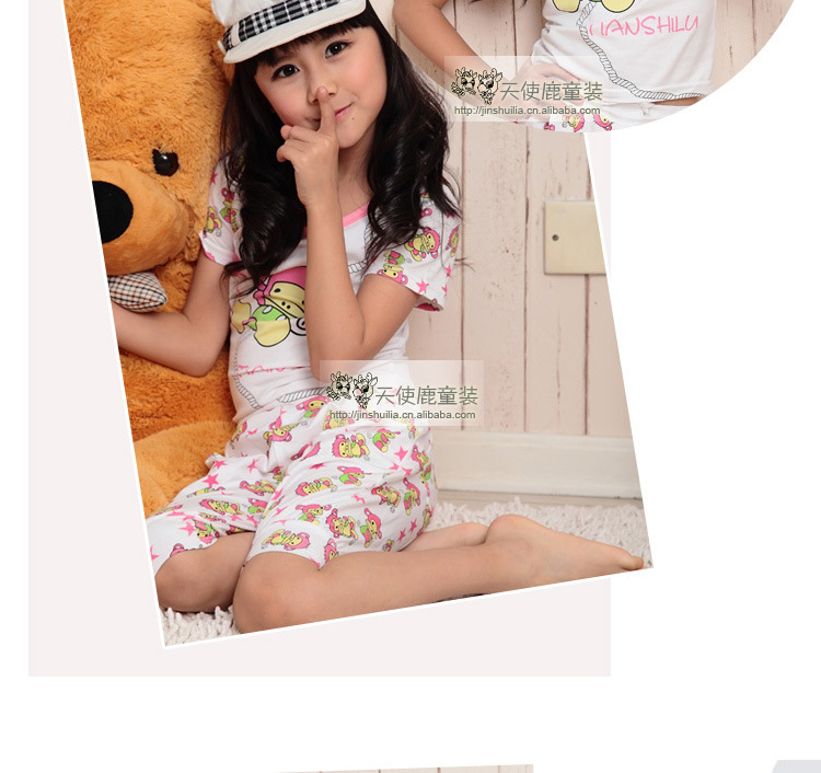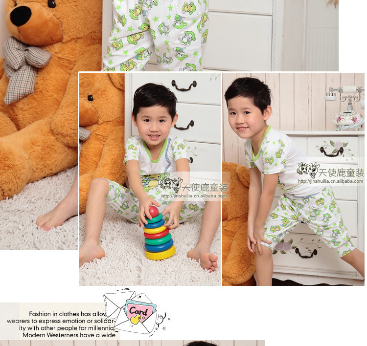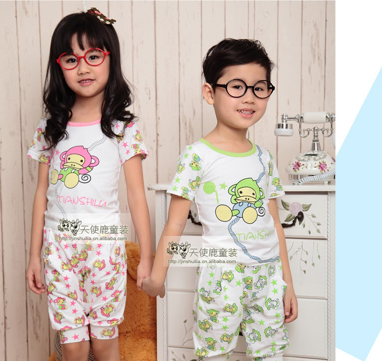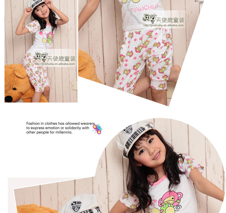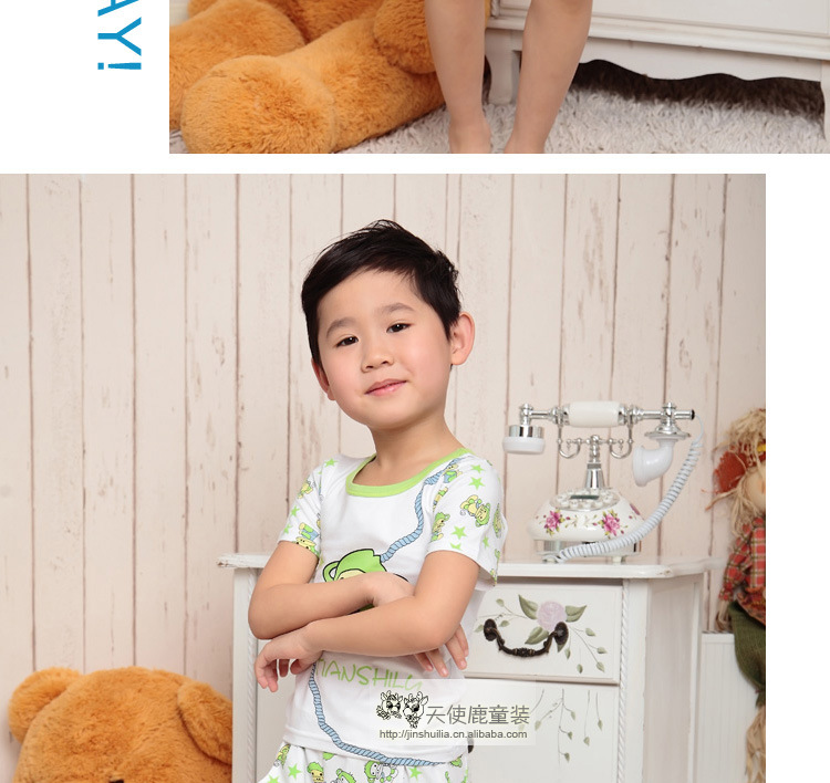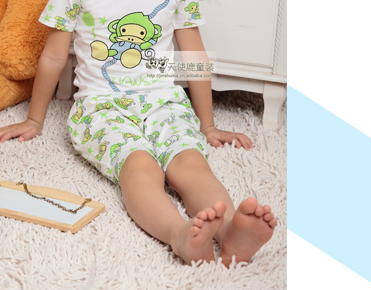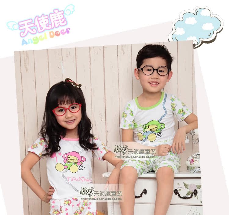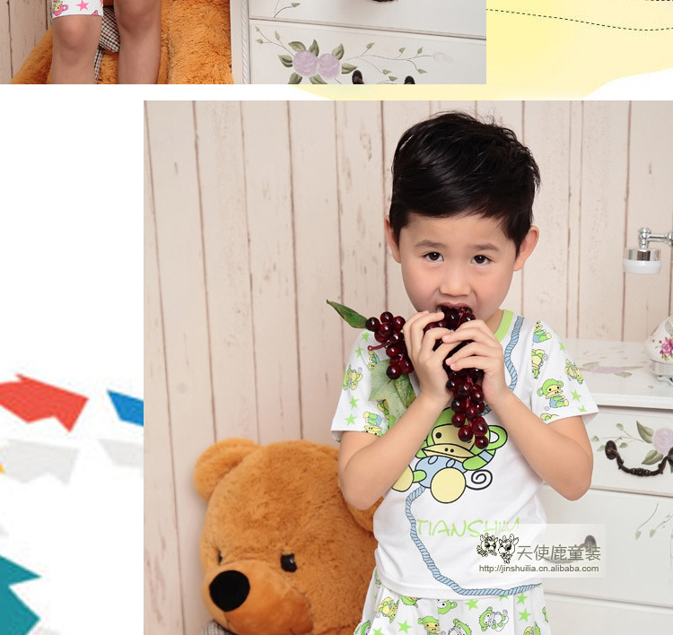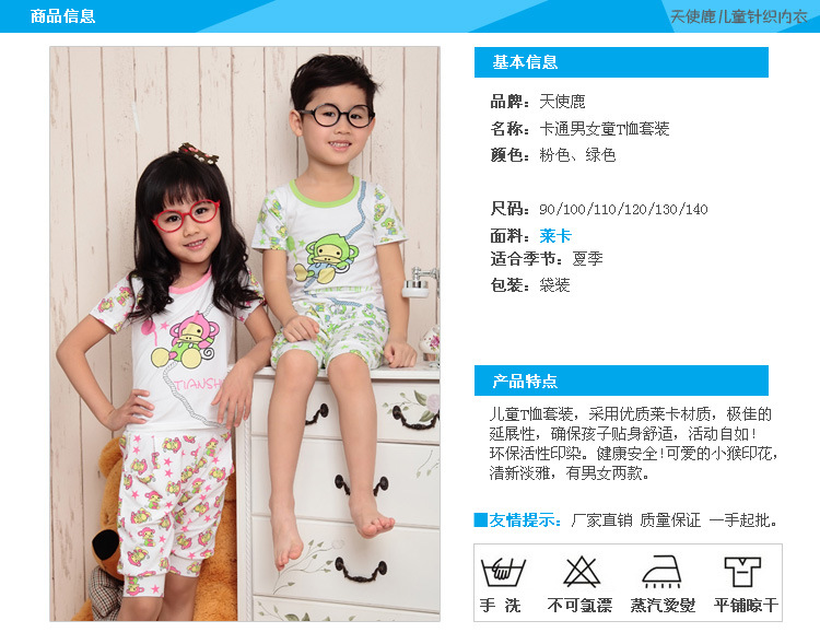 天使鹿童装 13年夏款男童女童莫代尔T恤套装 短裤套装