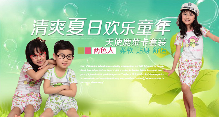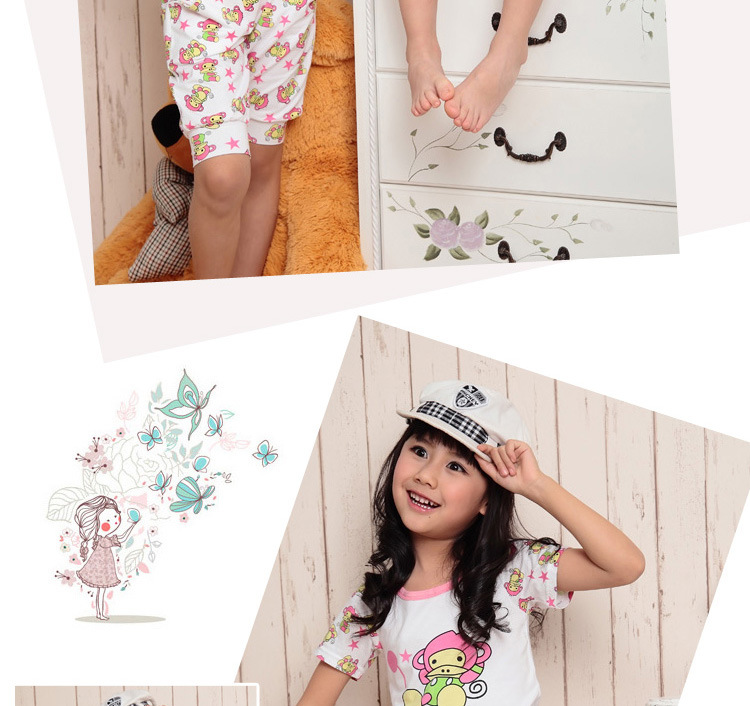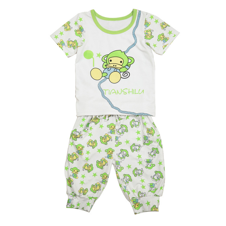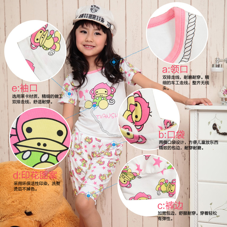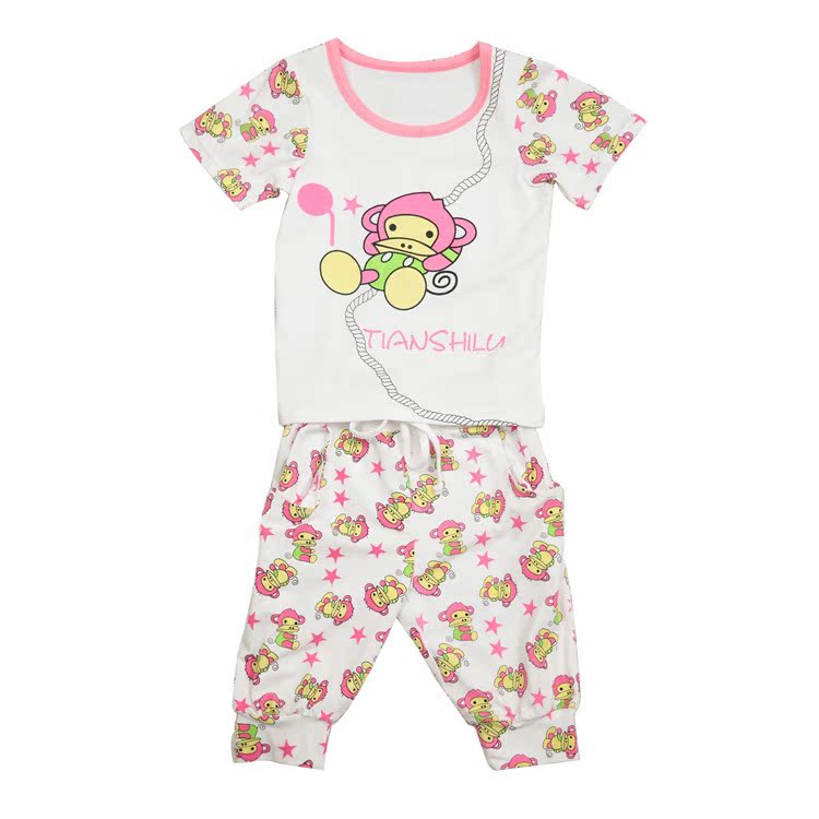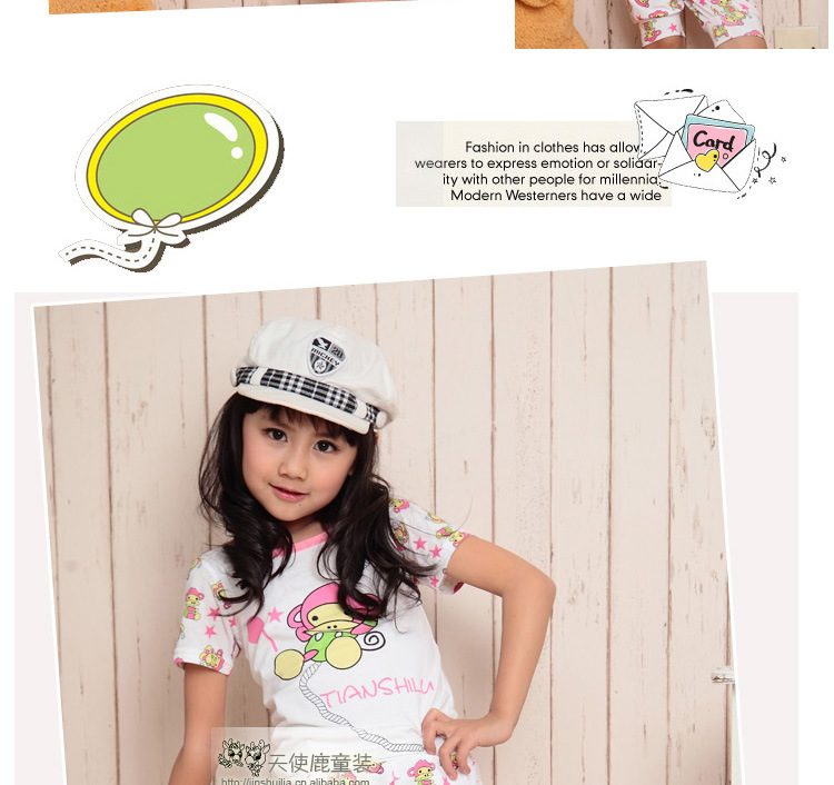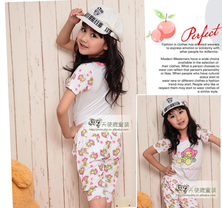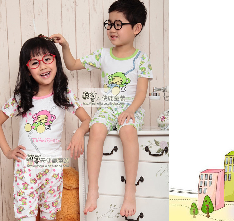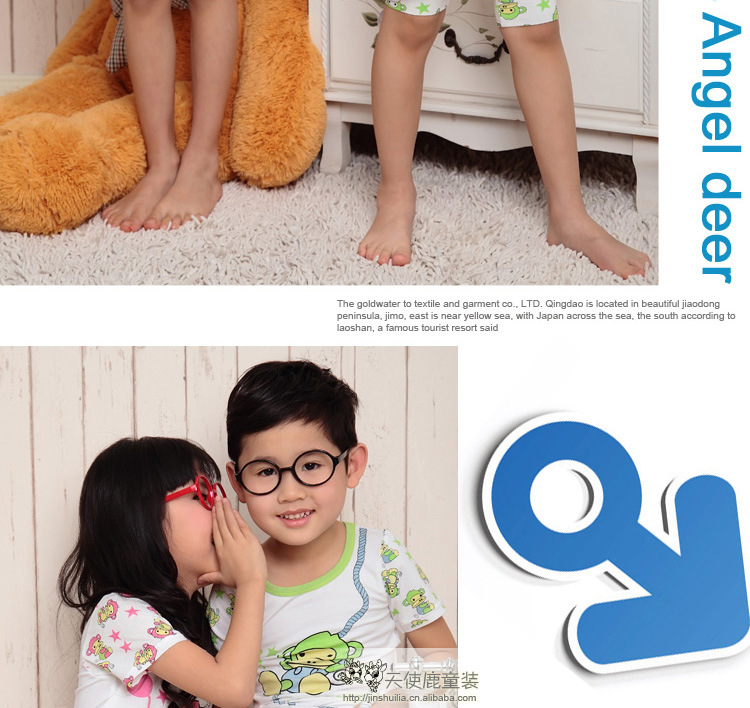 天使鹿童装 13年夏款男童女童莫代尔T恤套装 短裤套装