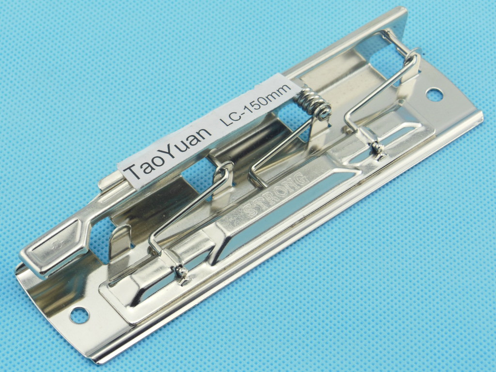 东莞桃园文具生产强力夹,规格有LC100A4S,LC100A2H,表面处理有光纹,点纹,格纹,铆钉距离:76/87MM,包装方式每箱1000PCS,每箱强力夹重量25.55KG,强力夹电镀效果好,不容易生锈耐用强力夹,是高质品客户所需求的。