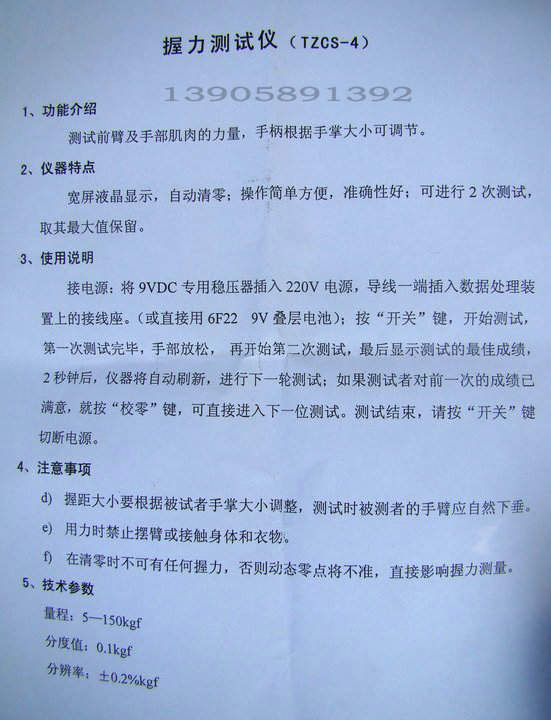 6 功能:利用电子握力计对被试者握力测定,反映个体上肌及手部肌肉力量的发