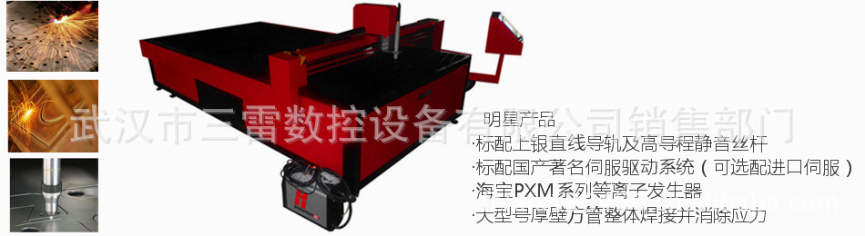 武汉市三雷数控设备有限公司专业从事广告行业,钣金行业等金属切割设备的生产和研发。现主营产品有数控等离子切割机,金属激光切割机,CO2激光机,数控便携火焰等离子切割机等。三雷主页:www.whslei.com三雷热线:13419551044联系人QQ:1253550941
