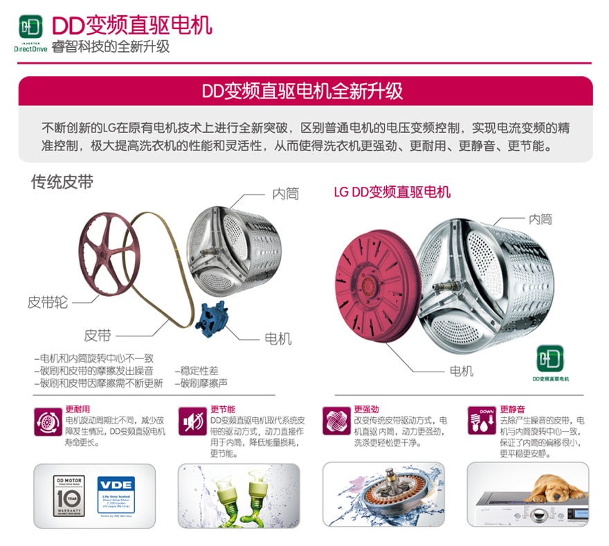 供应 1400转8公斤银色洗衣机 智能诊断LG WD-T14415D滚筒洗衣机