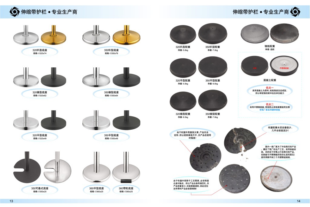 品名:76管5米双层烤漆 | 1、材质:铁,管壁及底盘厚度:足0.8mm表面效果:黑色烤漆 | 2.规格:350X76X910mm 产品净重达到9.0KG。 | 3.伸缩器:采用不锈钢热处理弹簧,尼龙织带:5000mm四方向接头。 | 4.配重:塑胶外壳内浇灌混凝土底部封不锈钢板(有效防止配重的底板因地面潮湿而引起的生锈),配带橡胶圈,有效防止地面磨损。 | 5.包装方式:杆体20支/箱,面盘20个/箱(纸箱加木箱),配重5个/箱(纸箱) | 6.(不含运费不含税) |