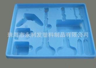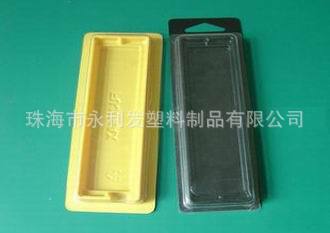 珠海市永利发塑料制品有限公司专业生产PVC、PET、PS、PP等各种透明、颜色、植绒、防静电、导电、镀金等材料的真空成型吸塑罩、吸塑内托、吸塑托盘、折边吸塑、压边吸塑、圆筒、折盒等包装产品,吸塑包装的特点是不受产品的形状和大小限制,可随意根据客户产品的大小、形状和客户要求设计生产,不仅使包装的产品显得更加美观大方,而且对所包装的产品还起到抗压、防震、防尘等作用。吸塑产品广泛适用于电脑附设耗材、玩具、礼品、五金、日用品、医药、电子、文具、食品、化妆品、汽车精品、服饰、鞋类等的内外包装之用。本司并可提供代客设计包装服务,质优价廉交货及时是本厂的经营宗旨,欢迎订购。
