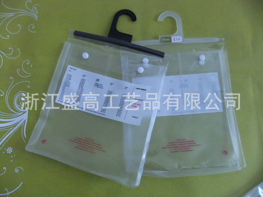 此类产品是用PVC或EVA软胶制成的产品。可根据客户的要求做成不同规格,形状的产品包装袋,再配上精美的印刷图案,使产品看上去美观大方(如PVC手提挂勾袋、PVC挂勾袋、PVC勾袋、PVC拉链挂勾袋,PVC服装袋、透明PVC挂勾袋等)。可用于玩具、制衣、化妆品、工艺品、礼品、医药等行业!