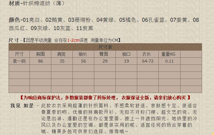 2013春装新品糖果多色无扣披肩防晒衣空调薄针织开网络爆款