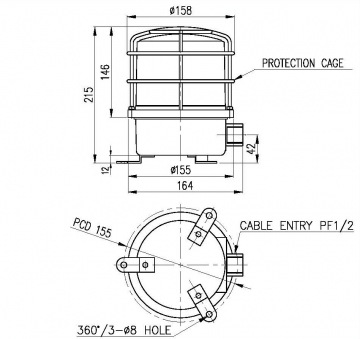 - 材质:灯罩-PC,身体-DIECAST Al,保护网-SUS316L