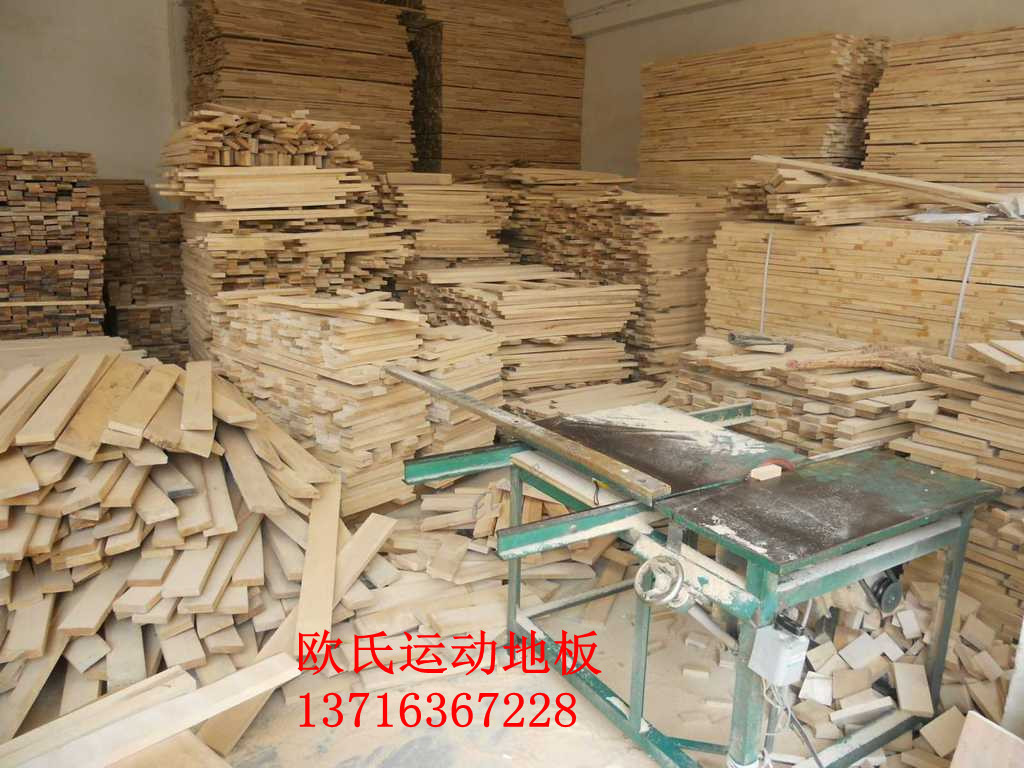 面板:面板可采用实木板。树种选用优质硬木,比较普遍使用的有硬枫木,水曲柳,柞木,榉木等等。由于枫木是长纤维树种,坚韧性好,硬度也适中,且在比赛以及电视转播中的观看效果最佳,因此世界上绝大多数体育馆的面板均是采用枫木来制作。面板含水率不得超过当地平衡含水8%-15%率。国外进口的MFMA的枫木面板规格一般有20mm、22mm厚度,宽度有50mm-72mm等等。国产板的尺寸大多数为22mm厚,带凹槽及凸缘。