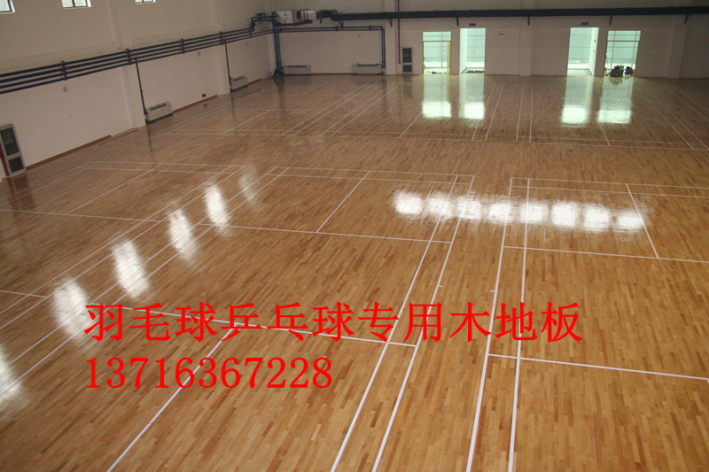 体育场馆绿色运动木地板是由防潮层,弹性吸震层,防潮夹板层,面板层组成的一种具高吸震性连续的固定悬浮运动木地板系统,面板层一般采用枫木,柞木,厚度为22mm,宽度60 mm,长度1800mm道凹槽及凸缘。面板层的腻子,底漆和清漆油漆工艺很重要,属高档面层材料,使用寿命10年以上,保修1年。国产运动木地板可用于乒乓球运动地板、篮球场地板、羽毛球运动地板建设,运动木地板价格可根据情况面议。