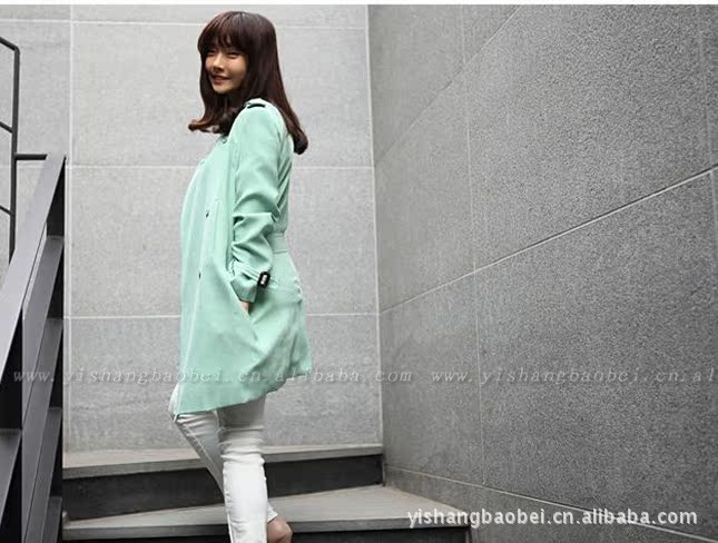 2013秋款 新款韩版糖果色暗门襟中长款风衣外套 厂家批发可混批