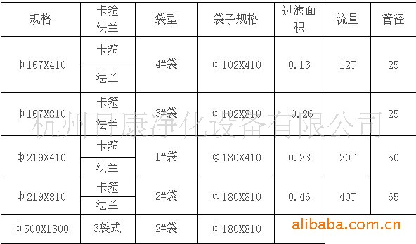 本袋式过滤器常规规格,以上处理量的大小是以水为过滤 介质,具体还看过滤介质的粘度以及杂质的多少