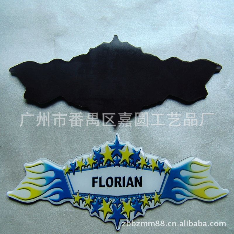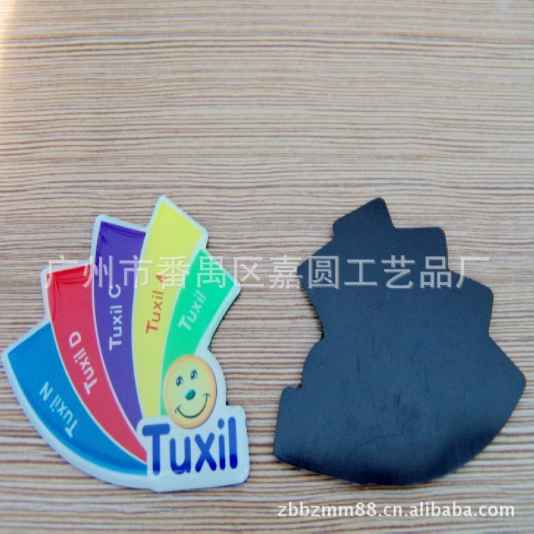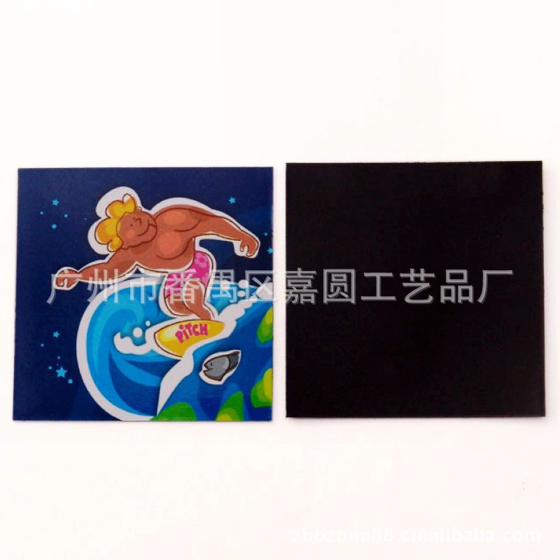 1)磁性冰箱贴:采用下面软胶磁铁+上面铜版纸彩色印刷腹膜制作而成。