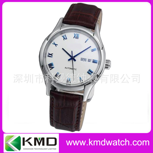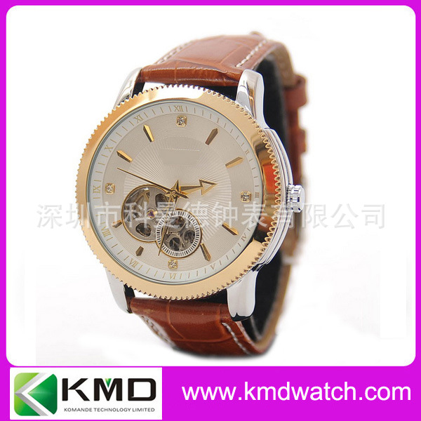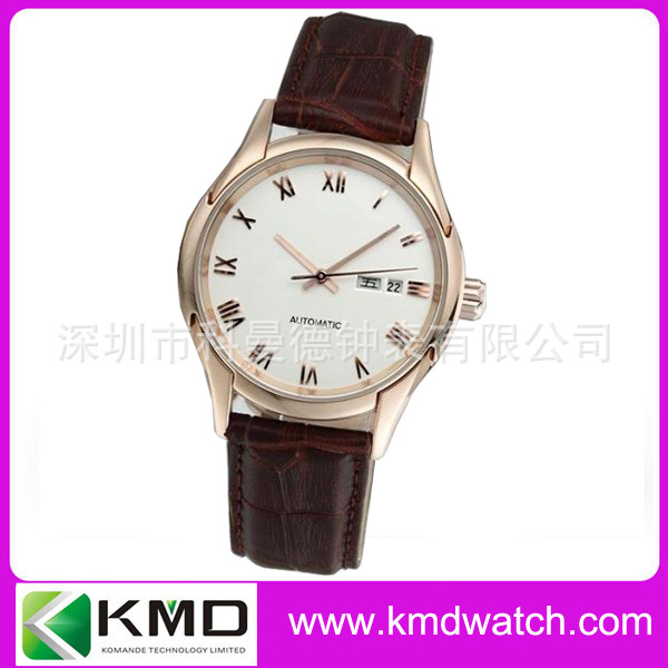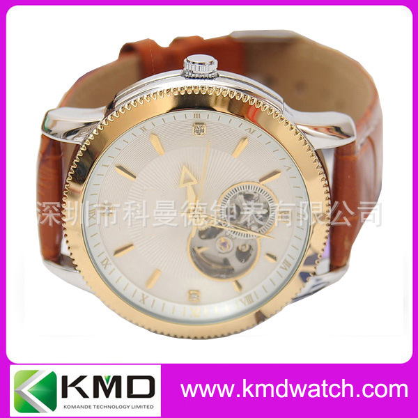 材 质:高级锌合金表壳,30米防水结构,真皮表带,原装进口机械机芯。表面如图。不锈钢加透