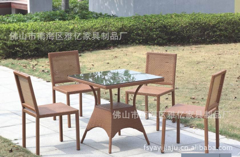 雅亿家具 休闲时尚桌椅 户外仿藤桌椅5件套 乐从热销桌椅组合