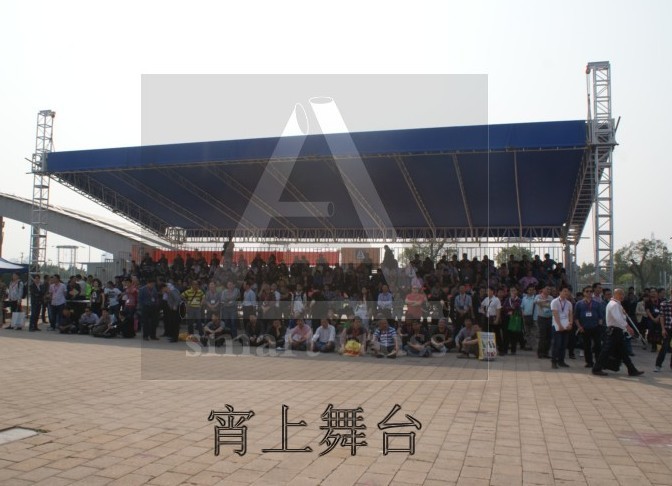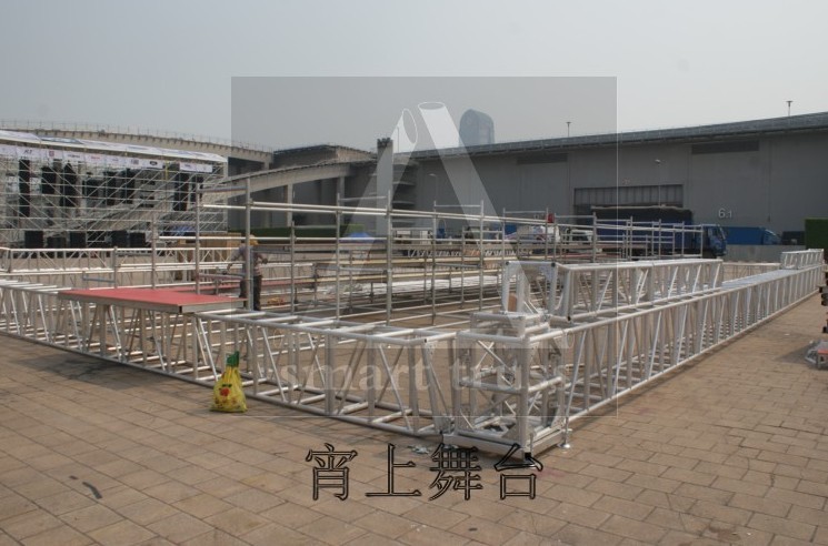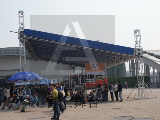 铝架帐篷的立柱所用规格为450*450mm,横梁为600*760mm,顶上的单排加为400mm的单排架,用于支撑雨篷。