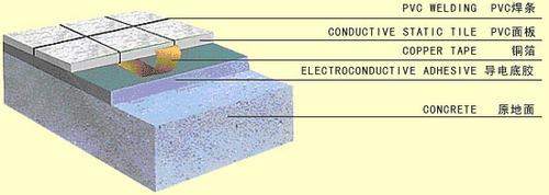 铜箔———刮导电底胶———铺设地板———接地线———测量电阻———地板抱槽———焊接———清理———打蜡。