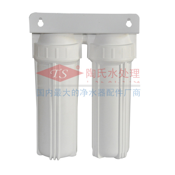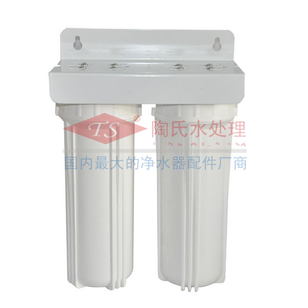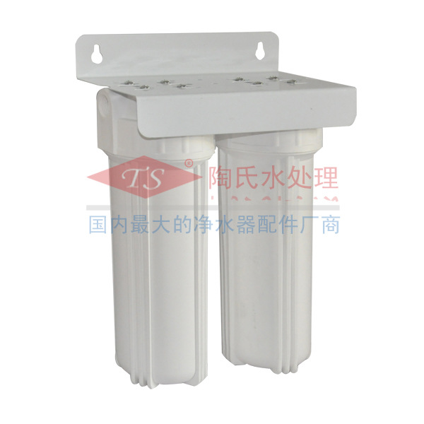 名称:10寸双级净水器双级过滤器 注意:原装滤瓶全部为白色滤瓶。 产品特点: 1、进出口采用4分连接,方便安装(一般家庭出水龙头上都是4分)。 2、第一级可采用透明滤壳,滤芯脏了一目了然。 3、利用自来水压力提供动力,不耗电。 4、采用钢质吊片、不锈钢螺丝。壁挂式、座台式均可,安装简单。 5、适合安装在家庭总进水管或需要前置过滤保护的立式、挂式RO机等。 安装参考: 如果安装在自来水龙头进水、开水机前面可以用不锈钢软管连接。如果是作为其他净水器的前置过滤也可以用专用接头连接原来的净水器专用管。对安装有疑惑的地方可免费本公司专门生产批发家用净水器设备,饮水机,管线机,迷你饮水机,厨房龙头,快速接头,直饮机,尼龙接头,纯水机,龙头净水器,不锈钢净水器,滤芯,滤壳,小联通,智能盖,花洒,沐浴器,普通接头,减压阀,隔板接,净水桶,压力桶,增压汞,测试工具,测试剂,RO膜,迷你饮水机,工业纯水机,直饮机等等。