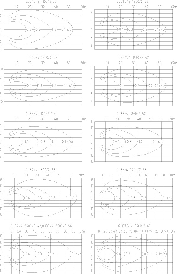 潜水搅拌机的选型是一项比较复杂的工作,选型的正确与否直接影响设备的正常使用,作为选型的原则就是要让搅拌机在适合的容积里发挥充分的搅拌功能,一般可用流速来确定。根据污水处理厂不同的工艺要求,搅拌机最佳流速应保证在0.15~0.3m/s 之间,如果低于0.15m/s 的流速则达不到推流搅拌效果,超过0.3m/s 的流速则会影响工艺效果且造成浪费。所以在选型前首先确定潜水搅拌机运用的场所,如:污水池、污泥池、生化池;其次是介质的参数,如:悬浮物含量、粘度、温度、PH 值;还有水池的形状、水深等。搅拌机所需的配套功率是按容积大小、搅拌液体的密度和搅拌深度而确定的,根据具体情况采用一台或多台搅拌机。