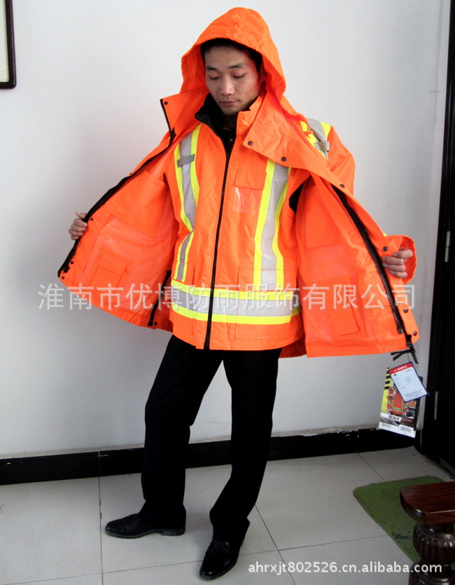 本公司产品严格按照SB/T10284-1997行业标准执行。技术达到合缝2Kpa一小时不透水,面料30Kpa一小时不透水,配色差大于3.0级;合缝扯断强度大于3.8KNm.所有缝合处全部用热封带经过700度高温热封!质量保证360天!