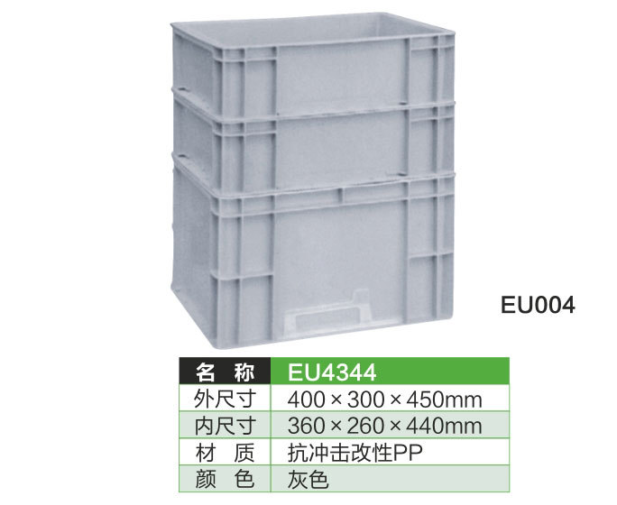 周转箱用途:广泛用于机械、汽车、家电、轻工、电子等行业,能耐酸耐碱、耐油污,无毒无味,可用于盛放食品,清洁方便,零件周转便捷、堆放整齐,便于管理。其合理的设计,优良的品质,适用于工厂物流中的运输、配送、储存、流通加工等环节。周转箱可与多种物流容器和工位器配合,用于各类仓库、生产现场等多种场合,在物流管理越来越被广大企业重视的今天,周转箱帮助完成物流容器的通用化、一体化管理,是生产及流通企业进行现代化物流管理的必备品。