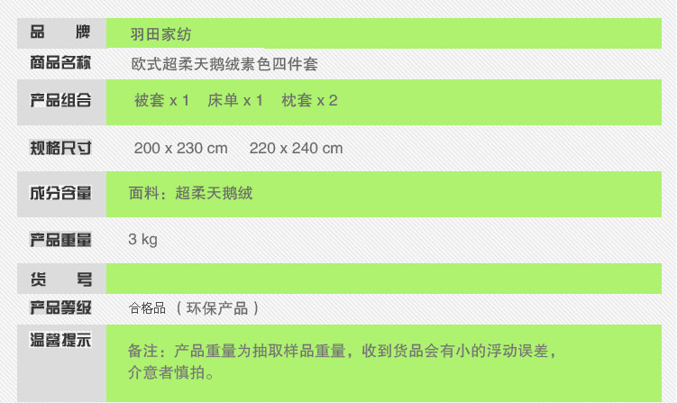 亲,我们厂只做环保促进健康的床品,坚决抵制含化工、易污染原材料成分的床品。