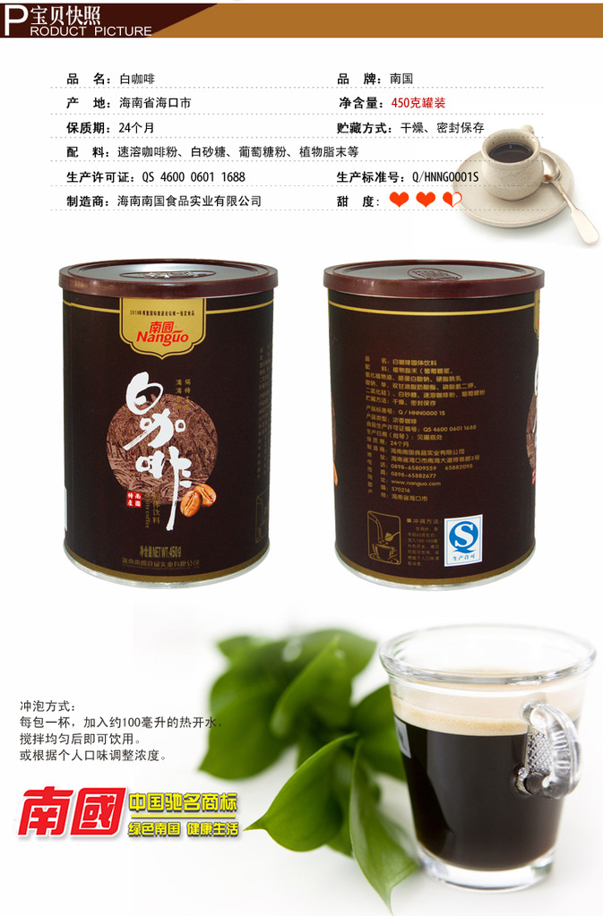 南国450g白咖啡滴滴香醇 独特工艺 | 宝贝档案 |