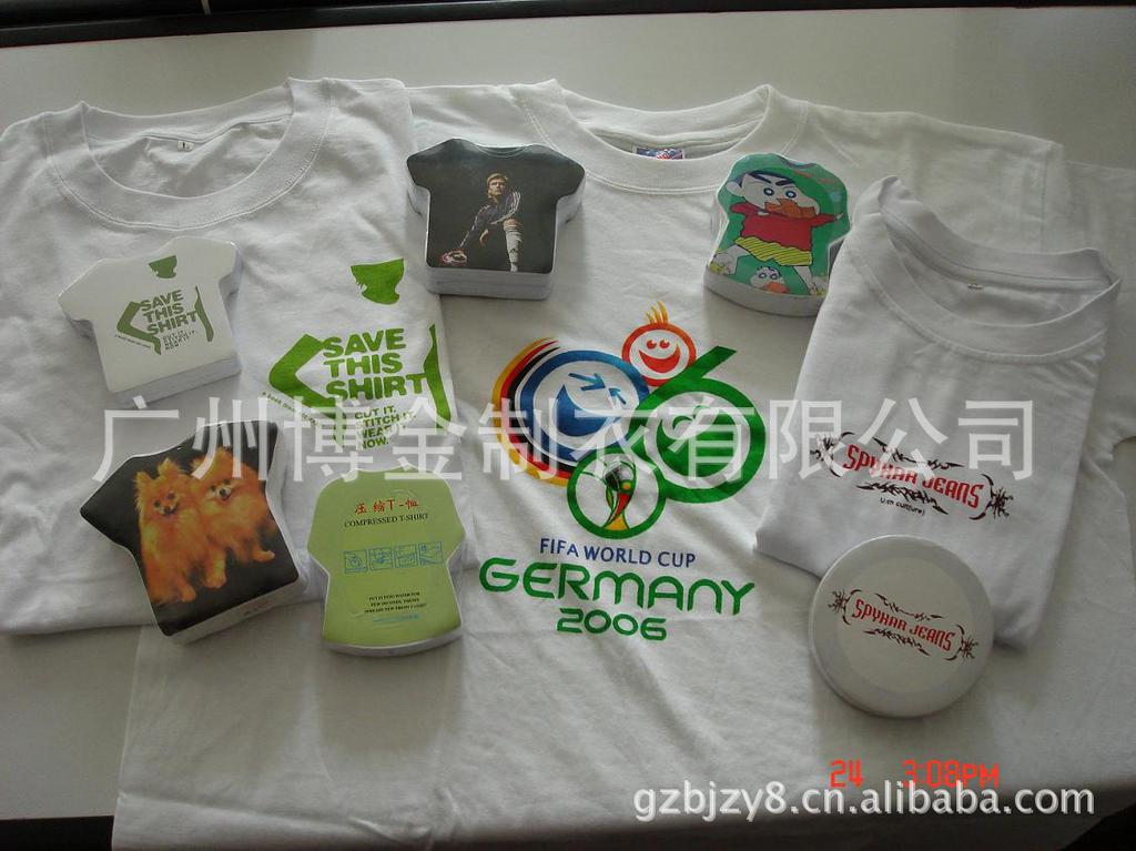 1什么是压缩T恤?压缩T恤也叫魔术T恤。 纯棉压缩T恤是采用特殊微缩工艺加工而成。T恤平方克重可以为:110克、140克、160克、180克/平方,尺寸为S、M、L、XL、XXL五种(或根据客户要求制作)。压缩后仅为8CM左右,其压缩种类有圆形、T恤型、烟盒型、机油型等等,小巧精美,非常便于携带,是人们居家日用、外出旅行,馈赠朋友的理想产品,也是企业和商家广告宣传,馈赠客户的理想广告礼品。