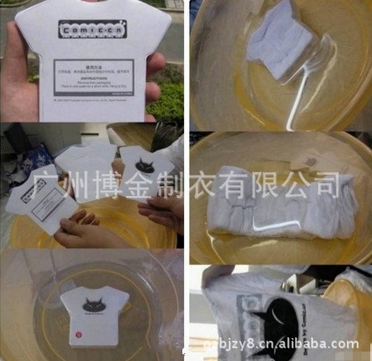 压缩T恤体积小,设计新颖,形象逼真、造型各异、舒适环保、安全卫生、人见人爱、小巧玲珑,携带方便,入水数分钟即可展开为一件漂亮、实用、并可重复穿着的T恤。